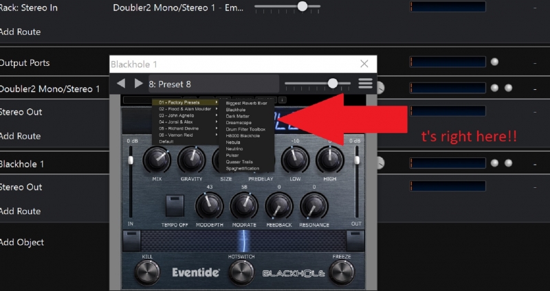 I was wondering what the presets in the preset list are supposed to be. In the software I only see preset numbers in the list, like “Preset 1”, “Preset 2”, “Preset 3”, etc. This is totally meaningless and absolutely worthless. I’m wondering if this is a problem with the vst host (Cantabile). Certainly Eventide would be smarter than to provide presets with apparent meaning and/or make it difficult to understand what the presets are………..see image below