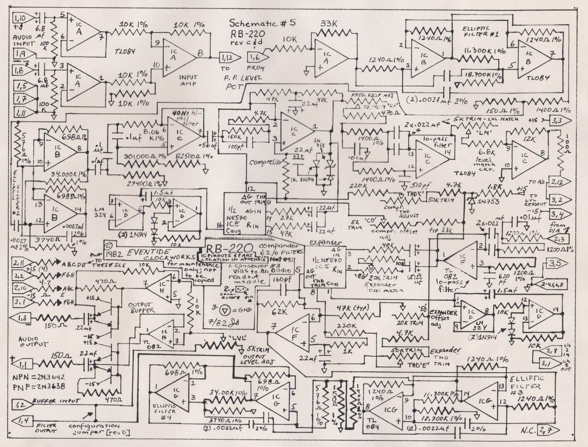I started at Eventide as a technician in 1974, repairing DDLs, Phasers, Flangers, Omnipressors®, and of course Harmonizer® special effects units. I’d done a few designs too: the JJ-193 delay line (the letters were my dogs’ initials and 193 was my home’s street address), the phaser plug-in card for the Instant Flanger (BPC-101: Bozo Phaser Card) and, later, the BD-980 broadcast delay.