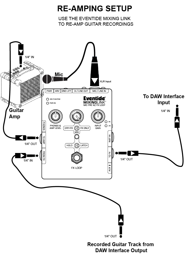 Here's a diagram that was created for re-amping. Hopefully it will help.