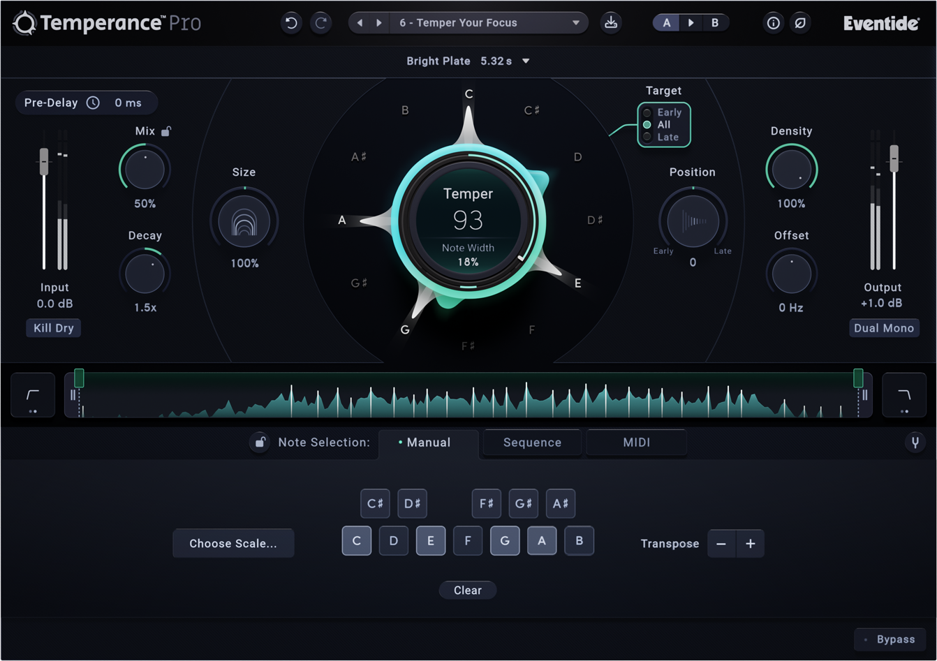 Advanced modal reverb with 29 world-class spaces delivering rich ambience, with deep control and distinctive character.
