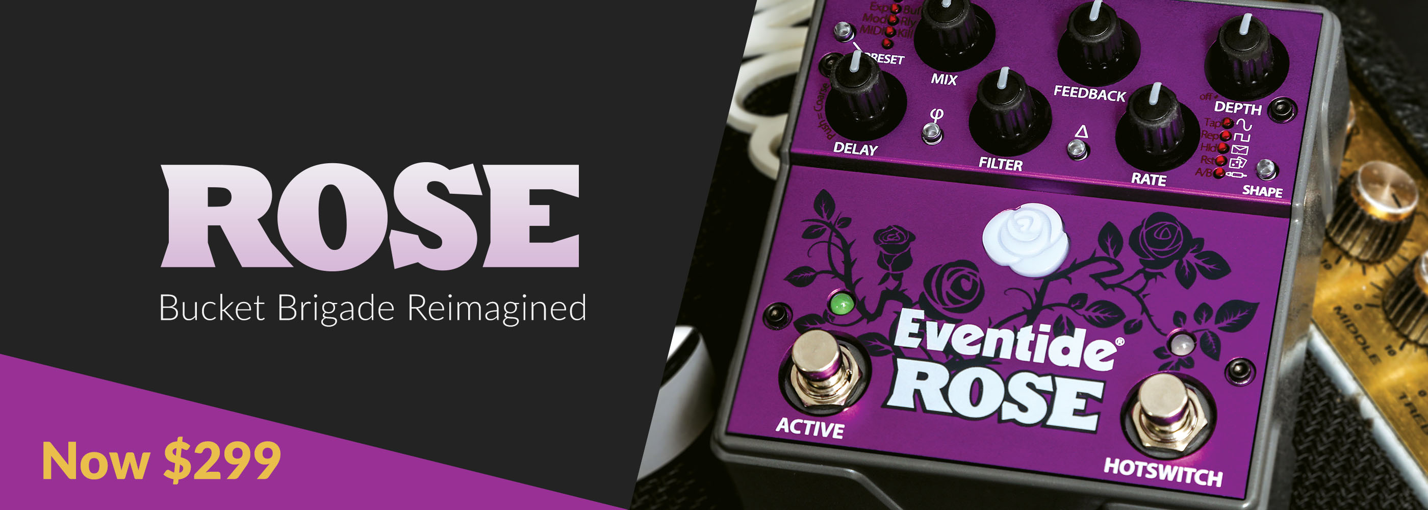 Rose is a modulated delay like no other. From reverse delays, slapback, chorus and everything in between, Rose is capable of producing a wide range of sounds. The perfect hybrid of analog and digital, the pedal features five different modulation sources, delay multiplier, phase invert/reverse, 25 customizable presets, true analog dry path, MIDI, and AUX/Expression via TRS for ultimate versatility, on stage or in the studio.