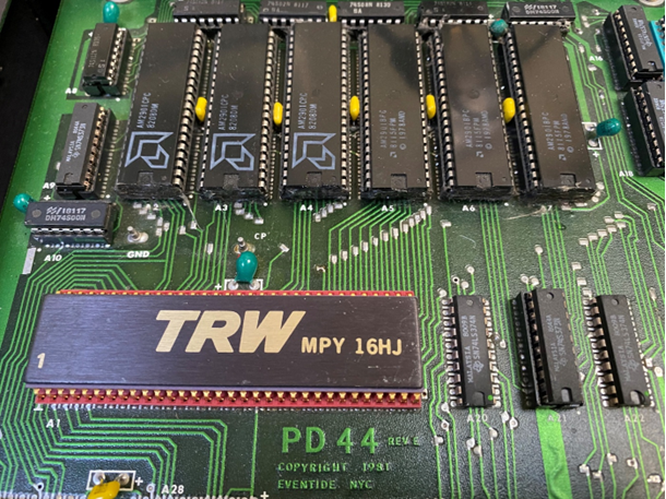 The SP2016 was designed to process audio as fast as possible at the time. It was a multi-chip array processor (Harvard architecture) constructed by combining the fastest discrete ICs available. The key components included a single chip 16X16 multiplier/accumulator designed for radar applications and a ‘custom’ 24 bit, fixed-point, ALU (Arithmetic Logic Unit) built by combining six ‘bit slice’ 2901s (4 bits each). Two banks of RAM, one static (for speed) and one dynamic (for size) completed the design of the array processor.