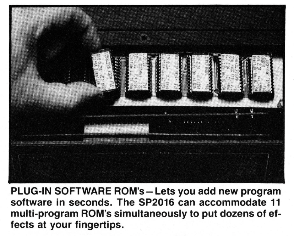 The unit could perform 128 computations per sample period of 20 uSec – powerful enough to do all kinds of things like vocoding, multitap delays, granular effects, band delays and, of course, algorithmic reverbs. New effects could be added by plugging in ROMs (Read Only Memory) into ZIF (Zero Insertion Force) sockets.